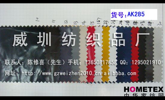幅寬:140 別名:AK285 厚度:0.8 主要用途:鞋、箱包、服裝、手套、家居、家具 品種:PU革 貨號:AK285 ============================================================= 以上產(chǎn)品全部現貨供應,可隨時(shí)提供樣布卡和現貨,隨時(shí)發(fā)貨。所有產(chǎn)品全部是廠(chǎng)家直銷(xiāo)價(jià),我們承諾:以超低利潤營(yíng)銷(xiāo),我們只求銷(xiāo)售量。為保證您的利益,我司建議您在采購前先確認我們的品質(zhì)樣與顏色樣后再拿大貨,期待與您的真誠合作。因產(chǎn)品種類(lèi)較多,具體參考未盡詳盡,如有需要,請您與我們聯(lián)系。 瑞豐紡織(中大旗艦店)坐落于國內最大的紡織面料產(chǎn)業(yè)中心—廣州中大,是一家專(zhuān)業(yè)銷(xiāo)售面料的廠(chǎng)家直銷(xiāo)商。主要經(jīng)營(yíng)產(chǎn)品有:全棉凈色、仿記憶絲面料、全棉(TC)色織等,面料品種花達上千余種,所有產(chǎn)品全部現貨經(jīng)營(yíng)。 我們面料的品質(zhì)來(lái)源于:1、采用國內外優(yōu)質(zhì)的原材料;2、使用精良的生產(chǎn)工藝和設備;3、完善的生產(chǎn)質(zhì)量管理體系。我們具有開(kāi)發(fā)和創(chuàng )新品種的強烈意識和優(yōu)越條件,并根據客戶(hù)需求與市場(chǎng)變化時(shí)時(shí)推出潮流面料。憑著(zhù)多年的專(zhuān)業(yè)行業(yè)經(jīng)驗,根據客戶(hù)需求,不論客戶(hù)在全國任何地方,只要提供小樣,就可在一兩天時(shí)間內輕松獲得所需面料的信息。 批發(fā)說(shuō)明供應商支持混批 。 ============================================================= 有意請加QQ:1295021910或電話(huà)聯(lián)系。 公司名稱(chēng):威圳紡織品廠(chǎng) 聯(lián)系人:陳修喜先生 手機:13650817858 網(wǎng)址:http://www.gzweizhen2010.cn.alibaba.com =============================================================