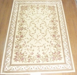 絲毛地毯:采用桑蠶絲和新西蘭羊毛經(jīng)手工打結而成,其生產(chǎn)工藝和手工絲毯相同,圖案設計同樣精美,色彩絢麗,地毯中花紋部分用真絲織,大地部分用羊毛編織,毯面立體感強,能夠更好地表現出地毯的藝術(shù)效果。絲毛地毯和絲毯一樣具有很高的藝術(shù)價(jià)值和收藏價(jià)值。