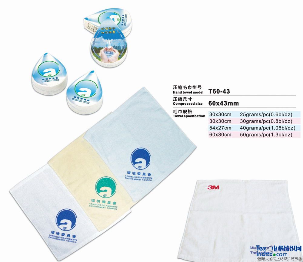高級環(huán)保壓縮毛巾是二十一世紀的高科技成果、采用100%純棉經(jīng)高溫壓處理而成的新一代產(chǎn)品。放入水中浸片刻即可張開(kāi)使用。本產(chǎn)品新奇獨特,干凈衛生,產(chǎn)品企業(yè)形象宣傳極具效力。廣泛用于廣告宣傳界、酒店、旅游公司等。