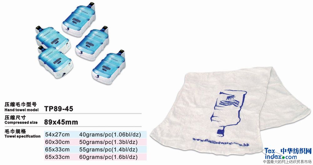 高級環(huán)保壓縮毛巾是二十一世紀的高科技成果、采用100%純棉經(jīng)高溫壓處理而成的新一代產(chǎn)品。放入水中浸片刻即可張開(kāi)使用。本產(chǎn)品新奇獨特,干凈衛生,產(chǎn)品企業(yè)形象宣傳極具效力。廣泛用于廣告宣傳界、酒店、旅游公司等。