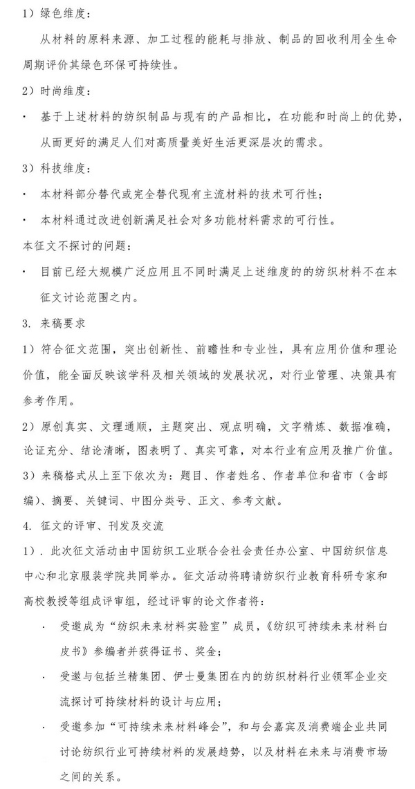 《紡織可持續未來(lái)材料白皮書(shū)》征文啟事