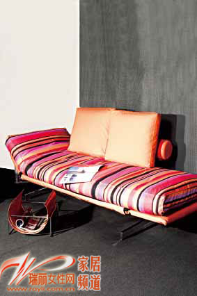橙色彩條帶來(lái)時(shí)尚感覺(jué),配以鋁合金支腿,更為現代、利落。這款三折沙發(fā)床小巧、簡(jiǎn)潔,兩側均可收起,非常適合小空間使用。