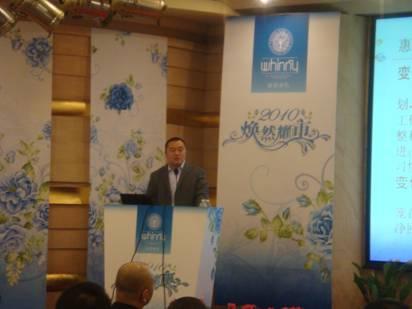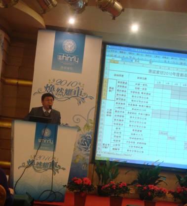 發(fā)布會(huì )上,運營(yíng)中心總監閆愛(ài)兵先生發(fā)表了重要講話(huà),他深入總結了惠誼的發(fā)展的三個(gè)時(shí)期:快速起步階段、調整陣痛期、穩步發(fā)展期。分析了多變的2009年,并對09年的工作進(jìn)行了回顧,對各地的銷(xiāo)售業(yè)績(jì)、網(wǎng)絡(luò )拓展、品牌推廣及促銷(xiāo)活動(dòng)、道具形象、產(chǎn)品包裝、產(chǎn)品開(kāi)發(fā)、團隊建設等方面進(jìn)行了歸納和總結。對目前惠誼存在的問(wèn)題進(jìn)行理性地分析,并提出改善的建議。在此基礎上有的放矢地制訂了2010年的工作計劃,仍然突出一個(gè)“多變”的理念。最后用美國總統奧巴馬的一句話(huà)來(lái)提升主題:“Change! It is what believe in.(變革!源自我們的信念。)” 將整場(chǎng)發(fā)布會(huì )推向高潮,博得與會(huì )嘉賓們的陣陣喝彩。