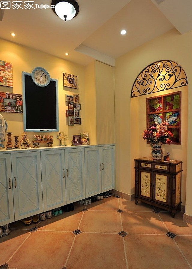 2012-12-10不同于以往常見(jiàn)的地中海風(fēng)格家居,沒(méi)有了經(jīng)典的地中海藍白配,多了些雅致,多了些浪漫,多了些亮麗色彩的唯美點(diǎn)綴。寬敞的客廳,藍色雅致的沙發(fā),金屬質(zhì)感的茶幾,弧形設計的沙發(fā)背景墻,藍色壁紙裝飾,黃色拱形設計電視背景墻。餐廳玻璃餐桌椅,拱形設計的背景墻以及壁櫥,藍色唯美畫(huà)面裝扮,而樓梯間用來(lái)擺放冰箱,并設計...[繼續閱讀] -