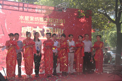2013-9-118月17日,水星家紡婚慶館江山店迎來(lái)了全國第一家加盟專(zhuān)賣(mài)店開(kāi)業(yè)大喜的日子。天降吉時(shí)迎財神,8點(diǎn)58分,鞭炮齊鳴,百花齊放,隆重的開(kāi)業(yè)慶典儀式正式開(kāi)始。上海水星家用紡織品股份有限公司總經(jīng)理李裕陸先生致開(kāi)業(yè)賀詞,來(lái)自全國各地的婚慶水星加盟商代表、分公司工作人員用一曲熱舞慶祝江山店的開(kāi)業(yè)并送上吉祥美好的祝...[繼續閱讀] -